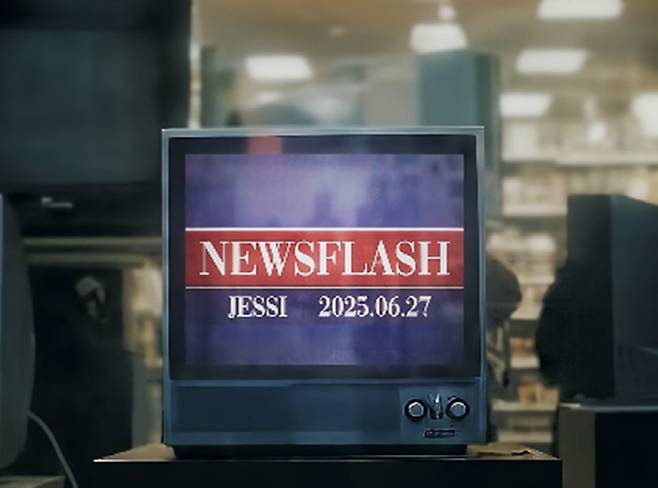 아날로그 TV 화면에 뉴스 속보를 뜻하는 '뉴스플래시(NEWSFLASH)'라는 붉은 배너는 제시의 컴백 일자를 예고했다.