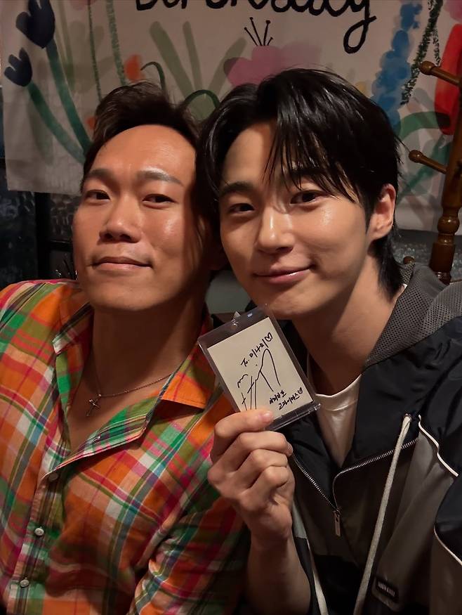 송진우는 '#힘쎈여자 강남순 싸인 한장으로 12시 통금시간 1시간 연장해~주시고!"라며 변우석에게 사인을 받은 것을 인증하며 너스레를 떨었다.