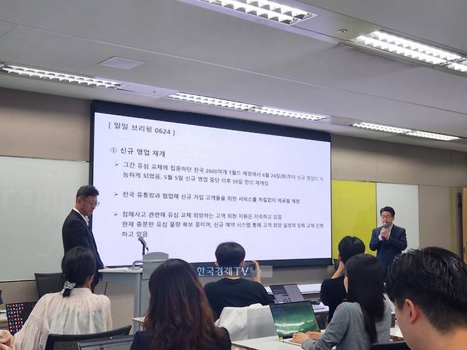 영업 중단기간 피해를 입은 대리점 등 유통망에 대한 보상도 내달 이뤄질 전망이다. 김 센터장은 "최근 유통망 간담회를 통해 다양한 의견을 들었다"며 "신규 영업을 하지 못 한 부분과 유심교체에 따른 어려운 점 등 부가적인 부분을 합쳐서 지원을 준비 중이고, 내달 중 실질적인 보상이 나갈 것으로 보인다"고 설명했다.