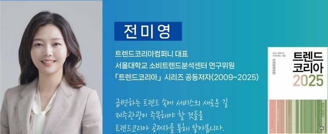 전미영 박사는 매년 한국 사회의 소비 흐름을 분석해온 ‘트렌드 코리아’ 시리즈의 대표 저자입니다. 2009년 이후 해마다 출간되는 이 시리즈는 경제·사회·문화 전반의 흐름을 읽어내며, 시대적 통찰력을 제공하는 주요 지표로 자리잡았습니다.