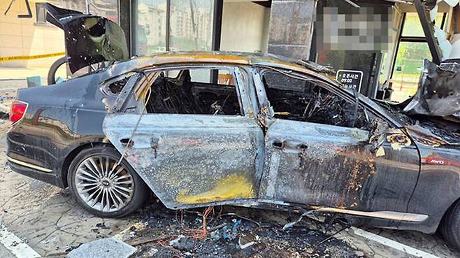 혼자서 영업 준비 중이던 B 씨는 가까스로 대피했으나, 이 사고로 차에 불이 난 데다 건물 일부로 불이 번져 소방 당국 추산 2천800여만 원의 재산 피해가 났습니다.