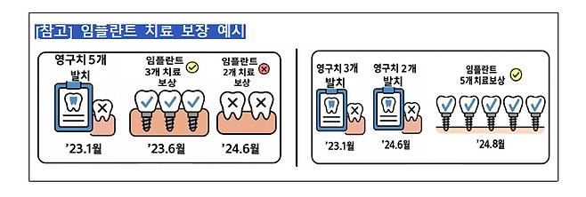 이중 3개에 대해서 같은 해 6월에 먼저 임플란트 치료를 하고, 나머지 2개는 2024년에 임플란트 치료를 받은 뒤 보험금을 청구했다.