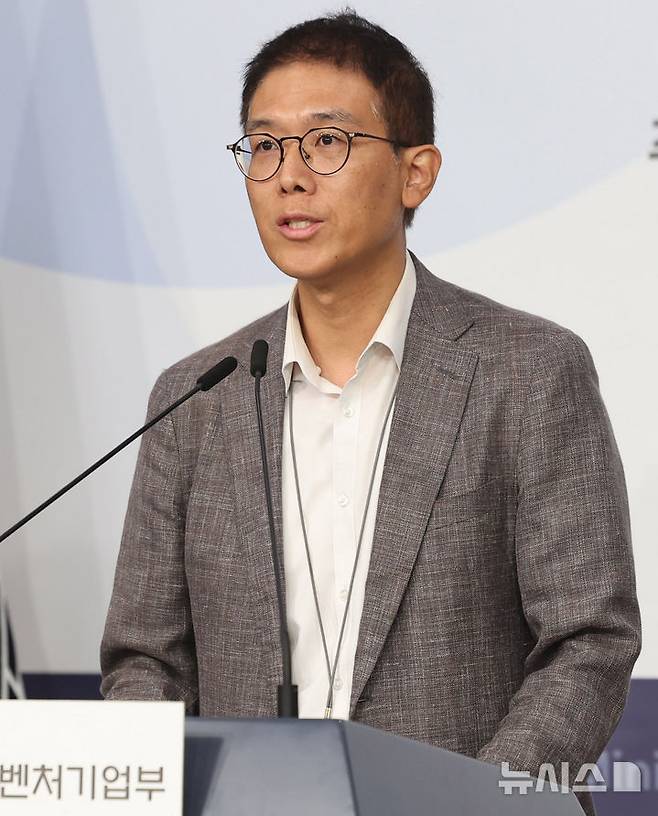 [서울=뉴시스] 추상철 기자 = 황영호 중소벤처기업부 소상공인경영안정지원단장이 24일 오전 서울 종로구 정부서울청사 별관 브리핑실에서 '소상공인 경영부담 완화 위한 3대 지원사업' 관련 브리핑을 하고 있다. 2025.06.24. scchoo@newsis.com