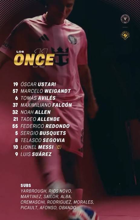 이날 마이애미는 루이스 루아레스와 메시, 텔라스코 세고비아, 세르히오 부스케츠, 페데리코 레돈도, 타데오 아옌데, 노아 알렌, 막시밀리아노 팔콘, 토마스 아빌레스, 마르셀로 웨이간트, 골키퍼 오스카 우스타리가 선발 출전했다.