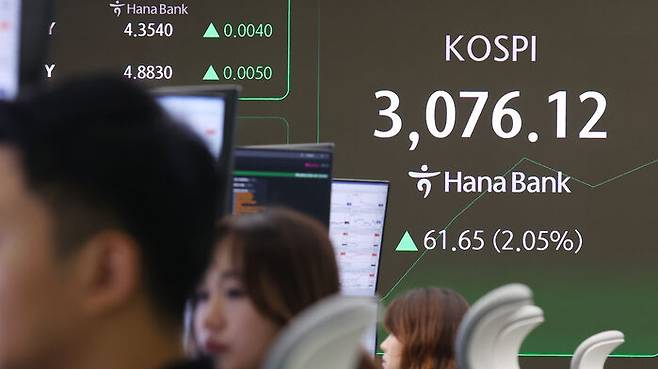 지수는 전장 대비 46.67포인트(1.55%) 오른 3,061.14로 출발해 상승 폭을 키워나갔습니다.