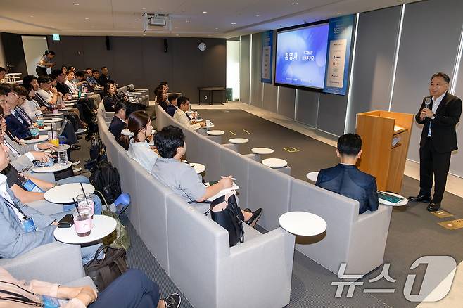 KT 구매실장 이원준 전무가 KT 퓨처 웨이브 테크 데이 참석 기업에게 환영사를 발표하고 있다. (KT 제공. 재판매 및 DB 금지) 2025.6.24/뉴스1