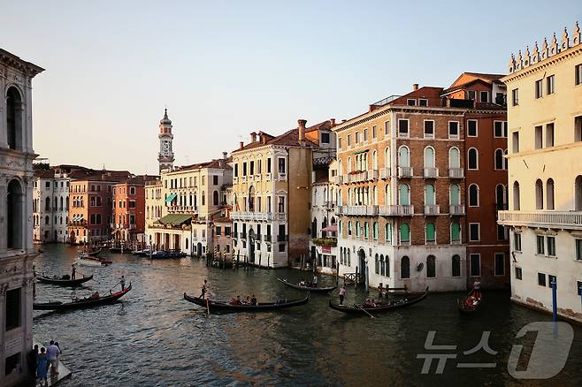 (로이터=뉴스1) 권영미 기자 = 이탈리아 베네치아의 아름다운 건물과 운하를 지나는 곤돌라들이 평화롭다. 하지만 베네치아에서는 오는 26~28일 제프 베이조스 아마존 창업자의 결혼식이 예정되어 시민단체와 환경단체의 비난을 사고 있다. 2025.06.22.