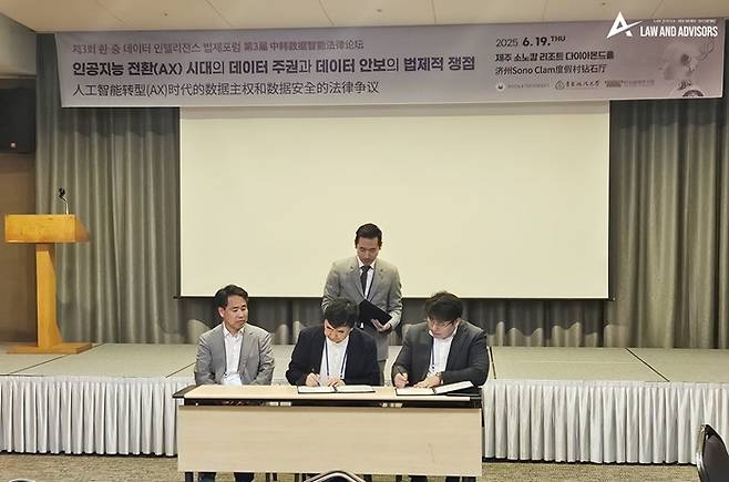 인하대학교 AI·데이터법센터(센터장 김원오)와 법무법인 로앤에이는 지난 6월 19일, 제3회 한·중 데이터 인텔리전스 법제포럼에서 ‘AI-데이터법 분야의 협력을 위한 전략적 업무협약(MOU)’을 체결했다.