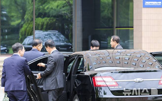 [과천=뉴시스] 이영환 기자 = 순직 해병 수사 외압 의혹 사건을 맡은 이명현 특별검사와 관계자들이 24일 오후 오동운 고위공직자범죄수사처(공수처) 처장과의 면담을 위해 공수처로 들어서고 있다. 2025.06.24. 20hwan@newsis.com