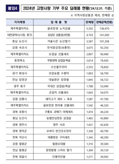 먼저, 고향사랑기부 인기 답례품 개발에도 새로운 관점이 필요합니다.