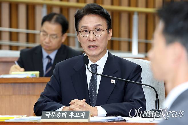 | ▲ 김민석 국무총리 후보자가 24일 서울 여의도 국회에서 열린 인사청문회에서 의원 질의에 답변하고 있다. |