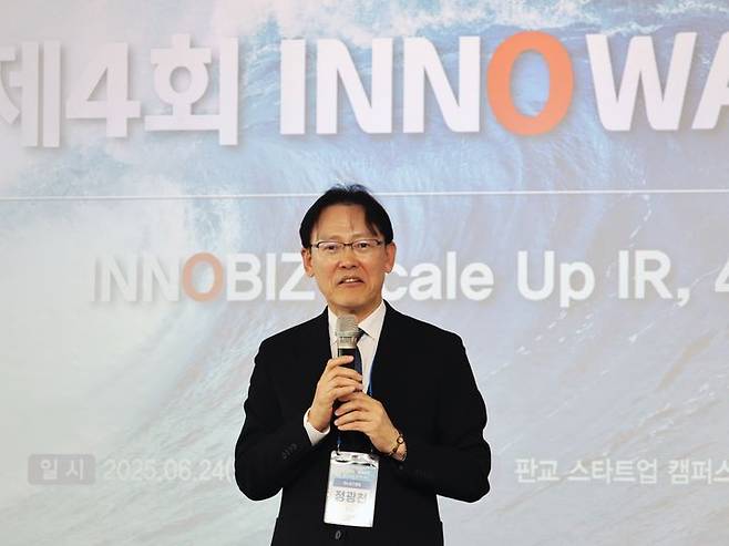 [서울=뉴시스] 정광천 이노비즈협회장이 24일 경기 판교 스타트업 캠퍼스에서 열린 '제4회 INNO-Wave'에서 인사말을 하고 있다. (사진=이노비즈협회 제공) 2025.06.24. photo@newsis.com *재판매 및 DB 금지