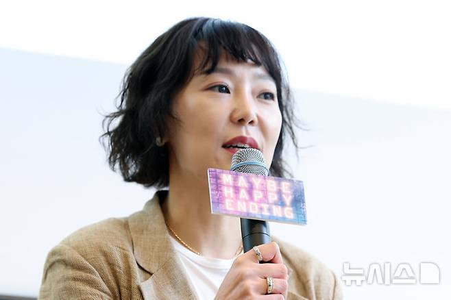 [서울=뉴시스] 박진희 기자 = 뮤지컬 '어쩌면 해피 엔딩(Maybe Happy Ending)' 프로듀서 한경숙이 24일 서울 중구 커뮤니티하우스 마실에서 기자간담회를 하고 있다. '어쩌면 해피 엔딩(Maybe Happy Ending)'은 지난 9일(한국 시간) 미국 뉴욕 라디오시티 뮤직홀에서 열린 제78회 토니상 시상식에서 작품상(Best musical)·연출상(Best Direction of a Musical)·각본상(Best Book of a Musical)·음악상(Best Original Score)·무대디자인상(Best Scenic Design of a Musical)·남우주연상(Best performance by a leading actor in a musical)을 수상해 6관왕을 차지했다. 2025.06.24. pak7130@newsis.com