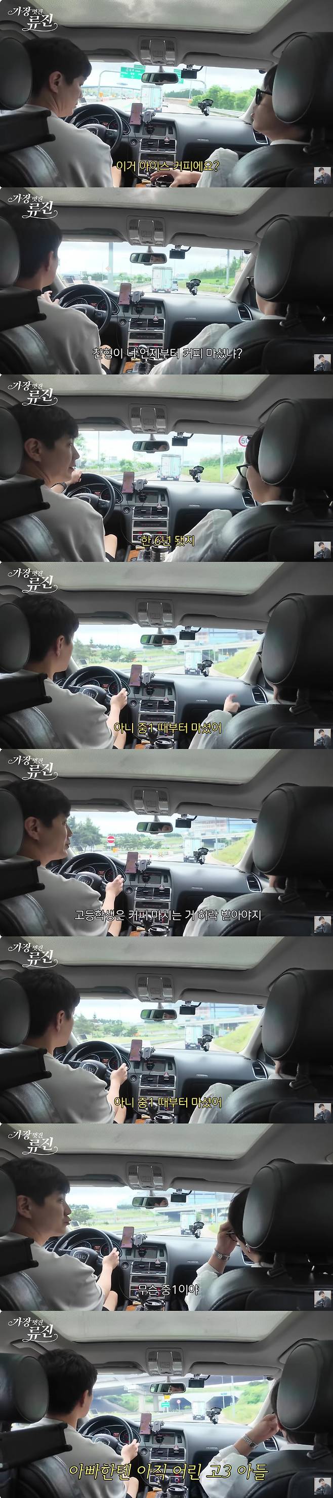 등굣길 차량 안, 찬형 군은 아빠 차에 놓여 있던 커피를 보고 "아이스커피예요? 저 조금 마셔도 돼요?"라고 물었고, 이에 류진은 "아침부터 카페인을 마시냐. 너 언제부터 커피를 마셨냐?"며 놀라워했다.