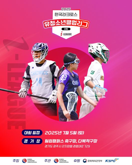 한국라크로스협회는 오는 7월 5일 문화체육관광부와 국민체육진흥공단의 후원을 받아 '2025 유청소년클럽리그(이하 I-League)' 상반기 U16 및 U14 리그를 경기도 광주에 위치한 곤지암 팀업캠퍼스에서 개최한다고 24일 밝혔다.