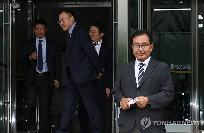 (과천=연합뉴스) 이진욱 기자 = 순직 해병 수사 방해 의혹 사건을 수사하는 이명현 특별검사가 24일 경기도 과천 고위공직자범죄수사처에서 오동운 공수처장과 면담을 마치고 나오고 있다. 2025.6.24