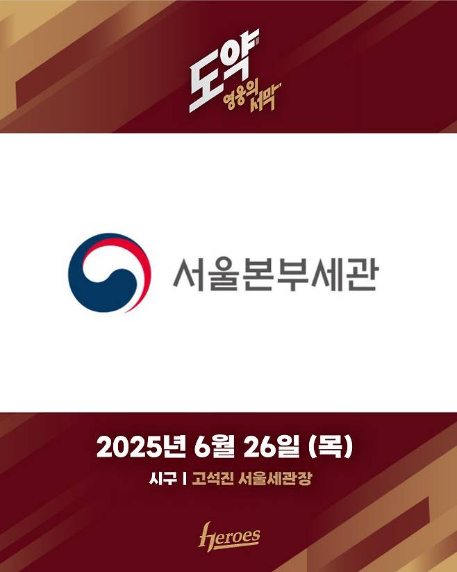 이날 고석진 서울본부세관장이 시구를 하고, 관세청 마약 탐지견 캐릭터 ‘마타’가 시타를 한다. 서울본부세관은 수도권 일대의 마약류 밀수입과 유통을 막기 위한 단속 업무를 전담하고 있다.