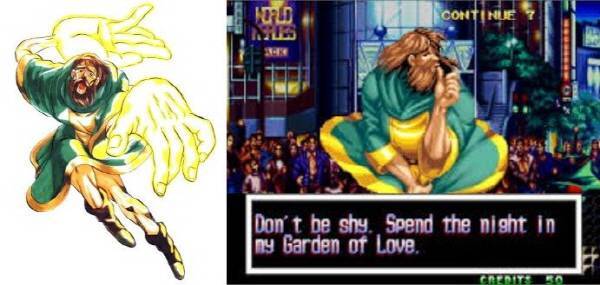 일단 '월드 히어로즈' 시리즈의 라스푸틴을 빼놓을 수 없죠. 라스푸틴은 게임 내에서 일종의 성소수자 같은 연출로 눈길을 끌었던 캐릭터입니다.