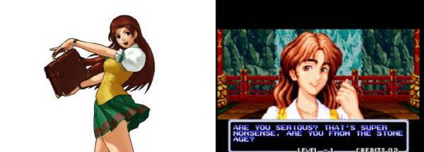 당시 북미 진출을 위해 캐릭터 설정이 꼬여버린 케이스인데, 상당한 인기와 함께 지금도 다양한 게임에서 등장하고 있는데요, 이 캐릭터의 필살기는 바로 자신의 여러가지 여성미를 드러내는 연출을 하는 거죠. 그리고 그 연출에 상대 캐릭터가 대미지를 입는 겁니다.