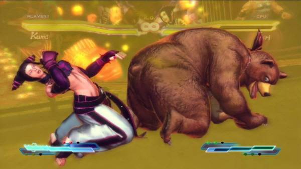 검떠: 그리고 가장 강력한 방귀 공격은 '스트리트 파이터 X 철권' 시리즈의 쿠마가 아닐까 싶습니다. 쿠마는 정말 대단히 박력 넘치는? 방귀 연출을 보여주는데요, 와.. 보기만 해도 당하면 멘탈이 나갈 것 같은 느낌을 줍니다.
