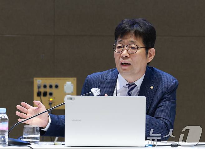 (서울=뉴스1) 이연주 기자 = 유상대 한국은행 부총재가 24일 서울 중구 한국은행에서 기자간담회를 하고 있다. (한국은행 제공. 재판매 및 DB 금지) 2025.6.24/뉴스1