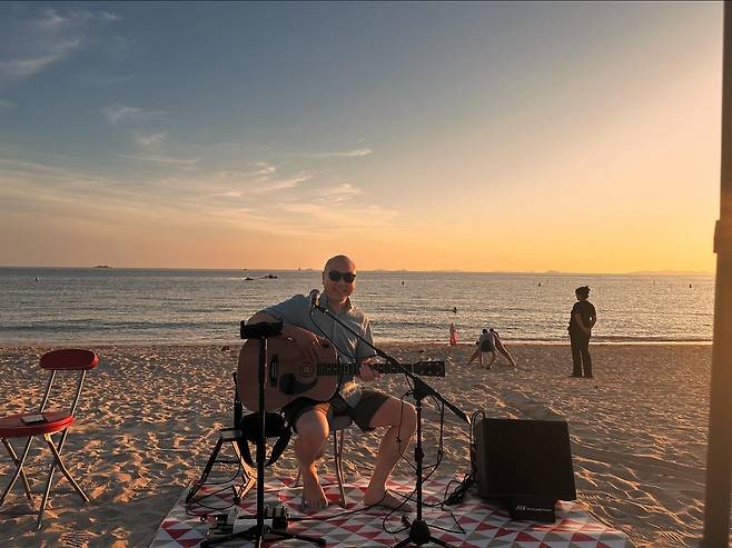 | ▲ 민상대 (주)이에스기술연구소 대표, 해변 공연. |