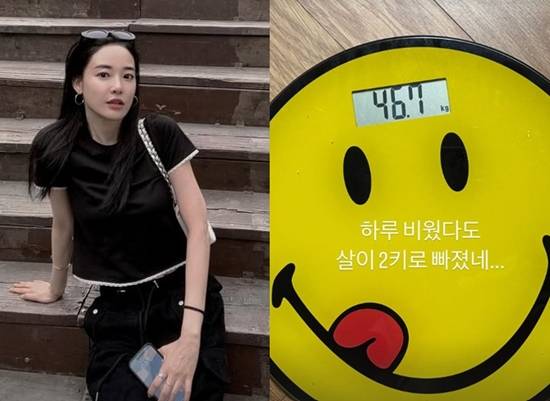 24일 이주연은 개인 계정에 "하루 비웠다고 살이 2kg 빠졌네"라는 글과 함께 46.7kg라고 적힌 체중계를 인증했다.