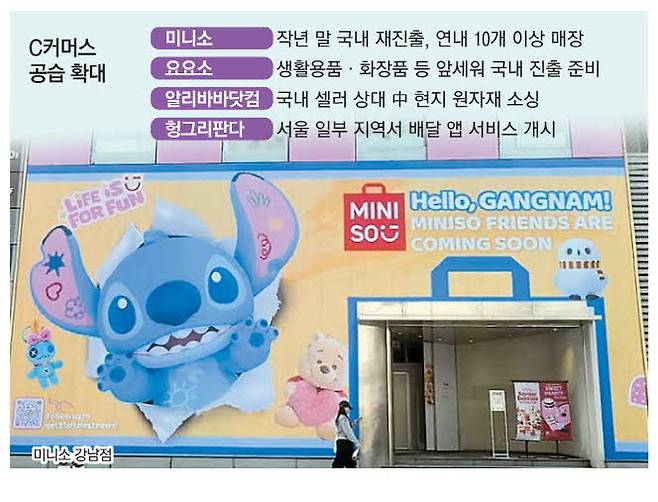 막대한 자금력을 바탕으로 한 중국계 유통공룡들이 온·오프라인 벽을 허물고 국내 유통시장 침투에 속도를 내고 있다. 이제는 온라인뿐만 아니라 오프라인 시장 구석구석까지 진출하면서 국내 업체들의 입지가 좁아지고 있다는 말이 나온다. 실제 한국 시장에서 한 차례 철수한 적 있는 미니소는 올 들어 매장 수를 공격적으로 늘리며 국내 진출에 힘을 주고 있다. 이 회사는 2016년 8월 한국 시장에 진출해 70여 개 매장을 운영했으나, 코로나19 직격탄을 맞고 2021년 철수한 바 있다. 당시 다이소처럼 생활용품 위주로 판매했으나 유니클로·무인양품·다이소 등 기존 브랜드 디자인을 표절했다는 논란에 휩싸이기도 했다.