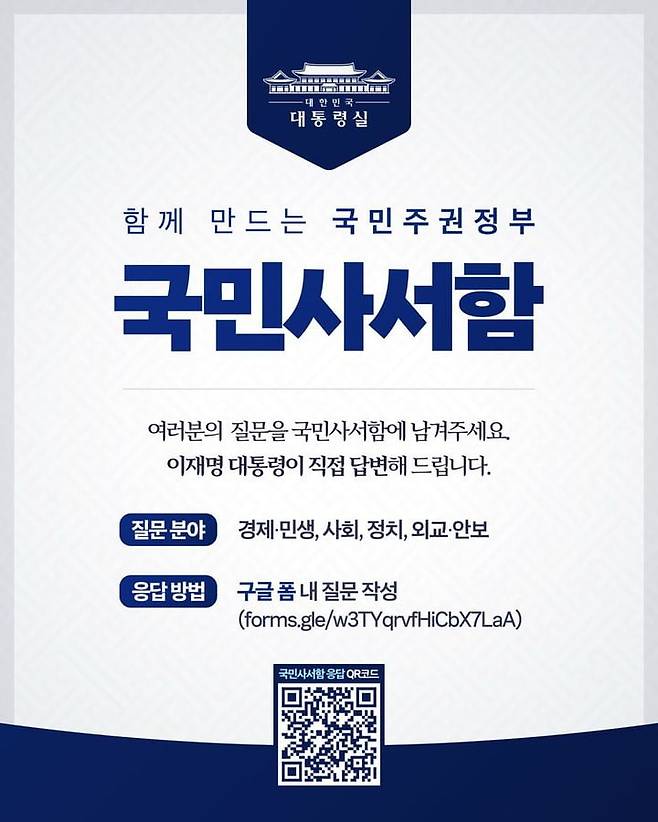 이어 "주시는 질문과 의견에 늘 귀 기울이며, 책임감을 가지고 성실히 답하는 정부가 되겠다"고 덧붙였다.