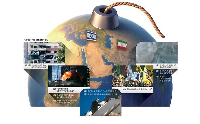 6월 21일(미국 동부시간 기준) 미국이 이란 포르도, 나탄즈, 이스파한의 핵시설을 전격 공습했다. 도널드 트럼프 미국 대통령은 이번 공격이 이란의 핵 위협을 제거하고 전 세계의 안전을 확보할 필수 조치였다고 강조했다. 특히 미국만이 파괴할 수 있는 지하 80m 요새인 포르도 핵시설을 초대형 벙커버스터와 B-2 스텔스 폭격기로 완전히 제거했다고 주장했다. 미국 우선주의를 앞세우며 중동의 무력 충돌에 개입하지 않겠다던 트럼프 대통령을 움직인 건 바로 이스라엘의 이란 핵 선제공격이었다. 이스라엘은 이란의 방공·정보·지휘체계를 무력화하며 압도적 우위를 확보한 뒤 미국을 집요하게 설득해 마침내 이스라엘·이란 전선으로 끌어들이는 데 성공했다. 공격 다음날 이란을 상대로 '정권 교체' 가능성까지 시사하며 최대 압박을 가한 트럼프는 23일 이스라엘과 이란 간 휴전 합의를 전하며 다시 세계를 놀라게 했다. 이란은 트럼프가 말한 휴전 합의가 최종 결정은 아니라고 말하고 있지만 이스라엘과 이란의 충돌 완화 흐름은 중동 정세에 분수령을 예고하고 있다. 트럼프는 휴전이 얼마나 지속될지에 대해 "무기한(unlimited)이라고 생각한다"며 기대하고 있다.