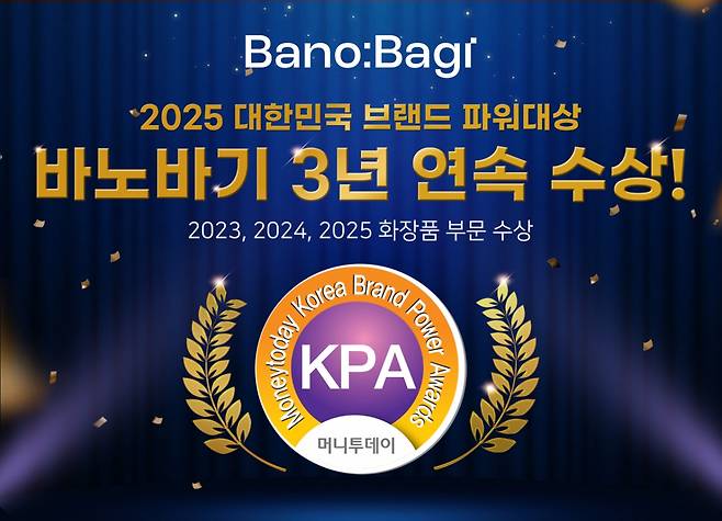 리얼 더마 코스메틱 브랜드 바노바기 코스메틱(BANOBAGI Cosmetic)이 머니투데이 '2025 대한민국 브랜드파워대상'에서 화장품 부문 3년 연속 수상의 영예를 안았다.