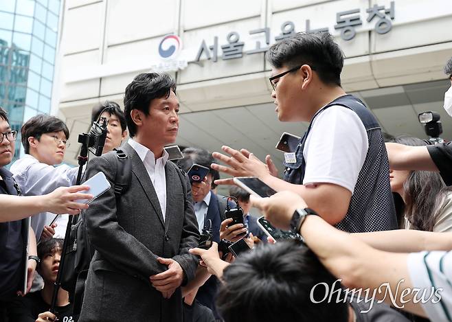 민주노총 위원장 출신인 김영훈 노동부장관 후보자가 24일 오후 서울 중구 서울지방고용노동청 인사청문회 준비 사무실로 첫 출근하며 기자들과 질의응답 시간을 가졌다.