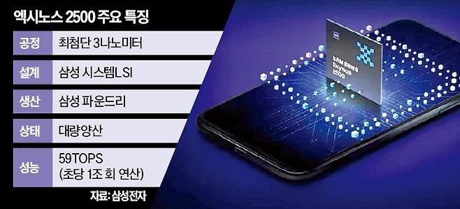 삼성전자는 이날 홈페이지에 엑시노스 2500을 공개하면서 제품 상태를 ‘대량 양산’으로 표기했다. 칩을 대량 양산할 수 있을 만큼 수율(양품 비율)이 올라왔다는 의미다. 삼성은 올 1월 출시한 갤럭시S25 적용을 목표로 엑시노스2500을 개발했으나, 성능과 수율 문제로 양산을 연기했다. 삼성이 3나노 공정으로 스마트폰용 AP를 양산한 것은 처음이다.