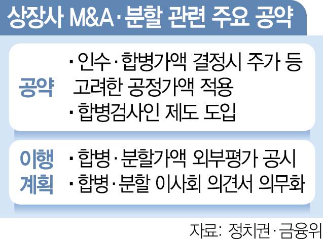 기업 분할 건수가 늘어난 건 향후 개정 상법이 본격적으로 시행될 경우 경영진이 지배구조 개편 의사 결정을 내리기 더 어려워질 것으로 판단했기 때문으로 풀이된다. 이재명 대통령은 대선 후보 시절 △상장법인의 인수·합병가액 결정 시 주식 가격, 자산가치, 수익가치 등을 고려한 공정가액 적용 △물적 분할 후 자회사 상장 시 모회사 일반 주주에 대한 신주 물량 의무 배정 △상장법인과 계열사 합병 시 일반 주주의 합병검사인 청구제 도입 등을 공약했다. 금융위원회도 최근 국정기획위원회 업무보고에서 기업 합병·분할에 대한 이사회 의견서 작성과 합병·분할가액 외부 평가 의무화 등을 추진하겠다고 보고한 것으로 전해졌다.