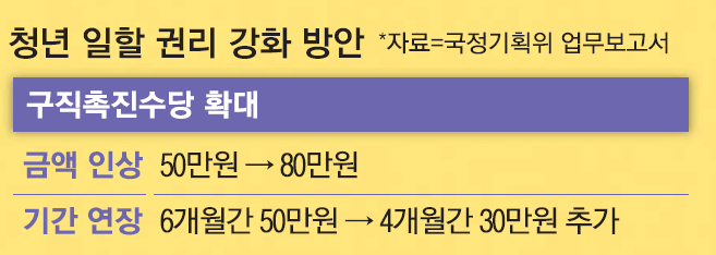 이에 따라 새 정부는 청년 취업을 촉진하기 위해 수당과 지급 기간을 대폭 늘리는 등 ‘청년의 일할 권리와 기회 강화’를 추진키로 했다.