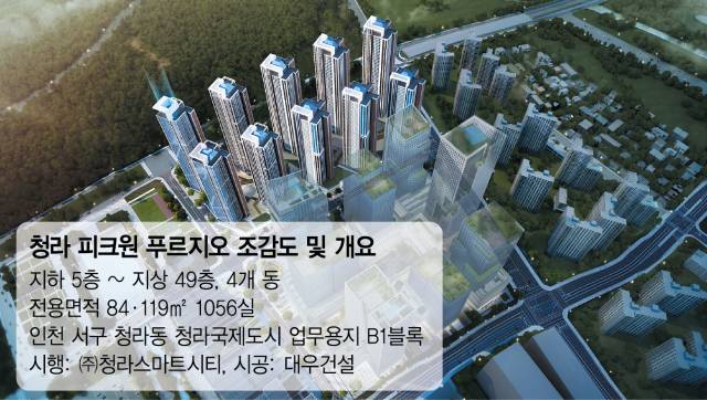 24일 분양 업계에 따르면 청라 피크원 푸르지오는 인천 서구 청라동 청라국제도시 업무용지 B1블록에 조성될 예정이다. ㈜청라스마트시티가 시행하고 대우건설(047040)이 시공을 맡은 이 단지는 지하 5층·지상 최고 49층, 4개 동, 전용 면적 84㎡·119㎡의 1056실로 구성된다. 단지 명칭의 청라 피크원은 ‘청라국제도시의 정점(peak)에 선 단 하나(one)의 자리’라는 의미다.