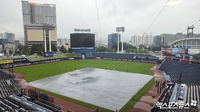이날 창원 지역에는 오전부터 적지 않은 비가 쏟아졌다. 홈 팀 NC는 일찌감치 내야에 대형 방수포를 설치, 그라운드 컨디션 악화를 막기 위해 모든 노력을 기울였다.