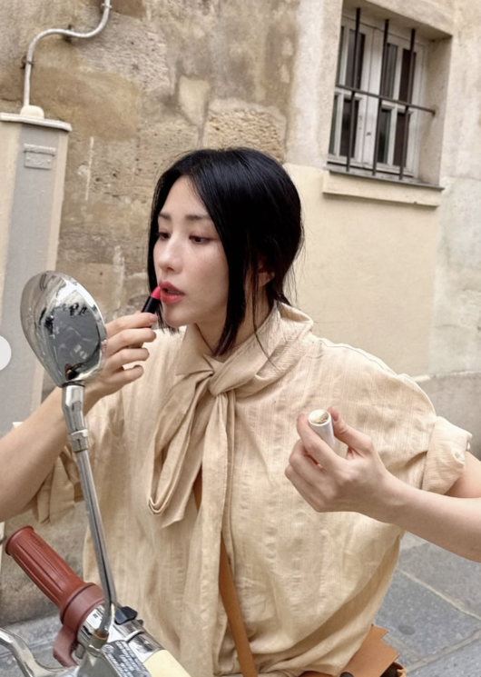 특히 바쁜 일상 속에서도 가꾼 듯한 뽀얀 피부와 은은한 메이크업은 보는 이들의 감탄을 자아냈다. 프랑스 거리와 전시장, 레트로 자동차 앞에서의 다채로운 포즈는 영화 속 한 장면 같은 분위기를 자아낸다.