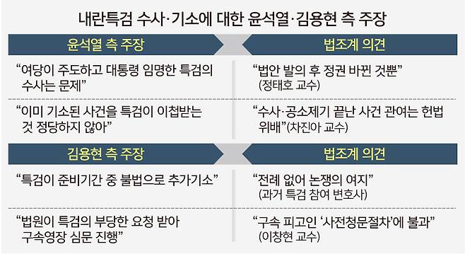 윤석열 전 대통령과 김용현 전 국방부 장관이 내란 특별검사팀의 수사와 재판에 이의를 제기하며 특검 출범 초기부터 공방을 이어가고 있다. 특검을 출범시킨 법률부터 기소·공소유지에 위헌·위법성이 있다는 것이다. 이들 주장이 법원과 헌법재판소에서 받아들여질지는 미지수다.