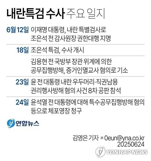 (서울=연합뉴스) 김영은 기자 = '12·3 비상계엄 사건'을 수사하는 조은석 내란 특별검사가 24일 윤석열 전 대통령에 대해 특수공무집행방해 혐의 등으로 체포영장을 전격 청구했다.
