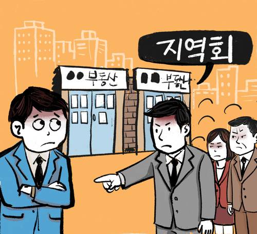 비회원 낙인이 찍힌 상황 속에 지역회 가입도 쉽지 않다. 지역회란 특정 지역 공인중개사들이 모인 일종의 회원제 친목회다. 친목회에 속하려면 가입비를 내야한다. 김씨가 중개업소를 차린 오산동의 경우 가입비가 500만원에 달하는 것으로 파악됐다. 또 가입비를 낸다고 하더라도 회원 과반의 동의를 얻어야 가입이 가능하다.