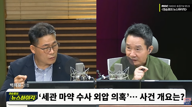 ◎ 진행자 > 마약 조직과 인천 세관 공무원들의 유착 의혹을 수사하던 도중 수사 외압을 받았다고 폭로한 분이 있습니다. 일명 '세관 마약 수사 외압 의혹 사건.' 여전히 의문은 풀리지 않고 있는데요. 폭로 당사자인 강서경찰서 화곡지구대장으로 근무 중인 백해룡 경정 스튜디오에 모셨습니다. 어서 오십시오.