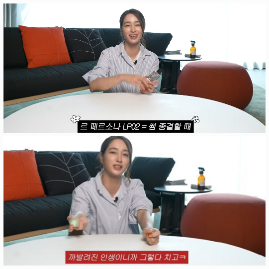 그중에서도 ‘르 페르소나’ 향수를 추천하며 “여자분들 호불호 없이 좋아할 향”이라고 설명한 이민정은 “세 번째 데이트에 추천한다”고 말해 눈길을 끌었다. 이어 “맑고 청량한 향”이라며 “썸을 확신으로 바꾸고 싶은 날 뿌리면 좋다”는 팁도 덧붙였다.