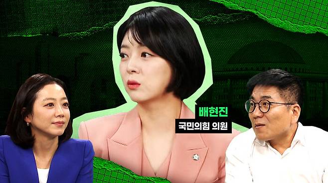 정유미 기자 : 사실 저희〈정치컨설팅 스토브리그〉에 굉장히 여러 번 나오셨을 법한데 이상하게 처음 오셨어요. 국민의힘 배현진 의원 바로 인사하겠습니다. 어서 오세요.