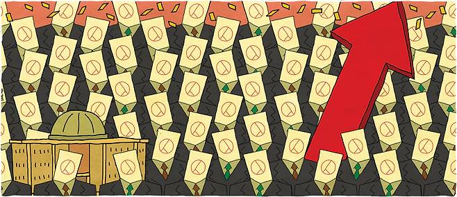 그런데 이재명 정부는 적대적인 정치를 극복할 헌법 개정과 선거법 개정 문제는 잠시 미뤄두고 경제 문제에 모든 힘을 쏟아붓고 있다. 여기서 나는 좀 혼란스럽게 만들 질문을 제기하고 싶다. 사회를 지배하는 패러다임이 바뀌면 혼란스러워진다. 예컨대 경제적 번영이 민주주의의 번영으로 이어진다는 생각은 오랫동안 지배적이었다. 20세기를 지배했던 이러한 관념은 오늘날 서서히 해체되고 있다. 경제적으로 성장한다고 반드시 고용이 증대하지도 않으며, 사회적 불평등이 해소되지도 않는다. 사회적 불평등이 우리 사회를 위와 아래로 갈라놓지만, 이 문제를 해결할 정치는 포퓰리즘에 빠져 사회를 옆으로 분열시킨다. 경제적으로 성장해 물질적 번영을 누린다고 해서 사회가 더 민주화되는 것은 아니다.