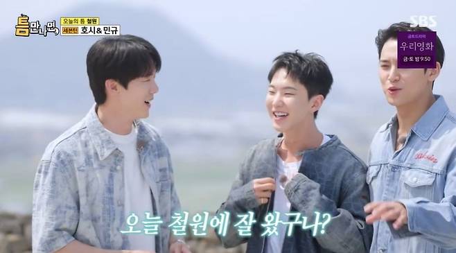 호시는 철원의 매력에 흠뻑 빠지란 유재석의 말에 "여기 오면서 되게 좋다고 생각했다"라고 했지만, 민규는 "주무셨잖아요"라고 폭로했다. 그런 가운데 첫 번째 틈 주인이 공개됐다. 유재석은 틈주인이 원래 군인 출신이었다고 추측했고, 호시는 "제가 또 하반기에 입대한다"라고 고백했다. 이에 민규는 "형이 굉장히 배울 게 많겠다"라고 말하기도. 이를 들은 유재석이 "오늘 네가 철원에 잘 왔구나?"라고 하자 민규는 "그래서 일부러 여기로 한 줄 알았다"라고 밝혔다. 하지만 유재석은 "일부러 그런 건 아니다"라고 했다.