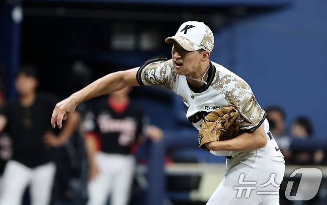 (서울=뉴스1) 이승배 기자 = 24일 오후 서울 구로구 고척스카이돔에서 열린 프로야구 '2025 신한 SOL뱅크 KBO 리그' KIA와 키움의 경기, 9회초 KIA 공격 키움 주승우가 역투하고 있다. 2025.6.24/뉴스1
