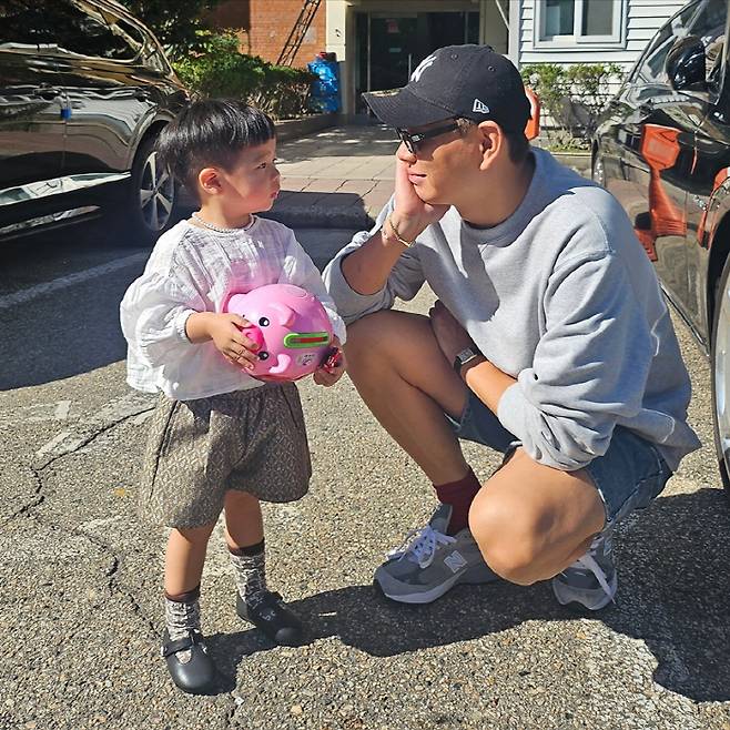 제이쓴은 24일 "비 오면 이거 입히고 흙탕물 튀기러 가야지"라며 사진을 공개했다.