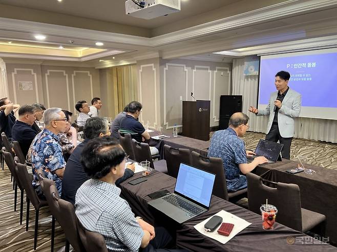 미래목회포럼(대표 황덕영 목사)이 24일 제주도 제주시의 한 호텔에서 ‘리더십 콘퍼런스’를 진행했다. 콘퍼런스는 전날부터 2박 3일의 일정으로 열렸다. 주제는 ‘AI 혁신의 시대, 목회 리더십’이다. 콘퍼런스에는 전국에서 온 목회자 등 미래목회포럼 관계자 30여명이 참석했다.
