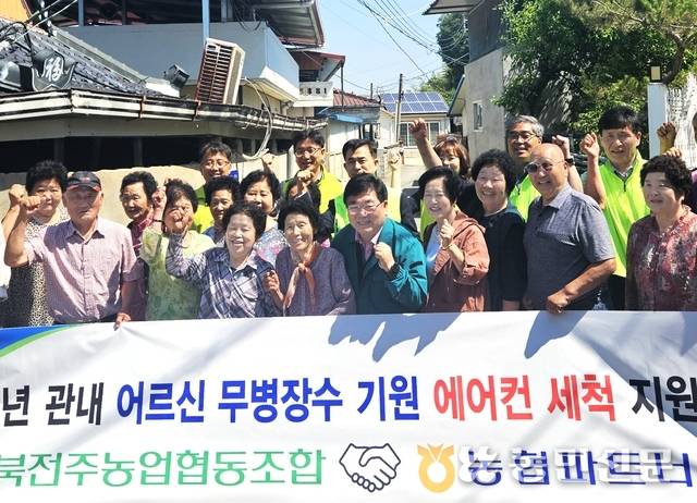 전북 북전주농협(조합장 이우광)이 본격적인 더위를 앞두고 어르신들의 쉼터인 경로당과 마을회관의 에어컨 청소 지원에 나섰다(사진).